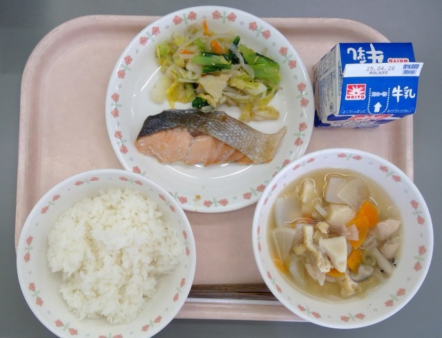 公平を期すために、こちらも昨年4月の給食メニューを取り上げましたが、まあ何と、親御様の誰もが安心する内容です(ごはん、魚の塩焼き、ごま酢和え、田舎汁、牛乳)。